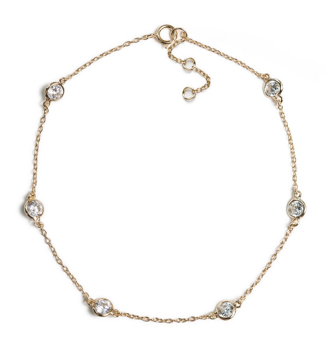 For an elegant and classic look. Each stone has a bezel setting, so it will not snag on fabrics. This bracelet has the perfect combination of dainty and sparkle.